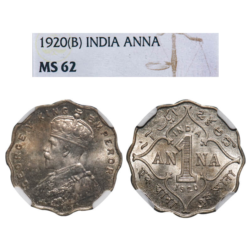 George V, Copper-Nickel, 1 Anna, 1920, Bombay Mint, No dot. F. Prid 950. GK 1150. NGC Slabbed MS 62. Extremely Rare.