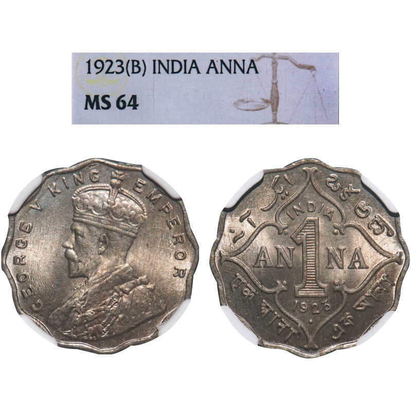 George V, Copper-Nickel, 1 Anna, 1923, Bombay Mint, Dot. F. Prid 951. GK 1151. NGC Slabbed MS 64. Extremely Rare.