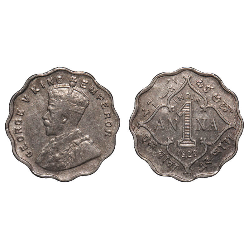 George V, Copper-Nickel, 1 Anna, 1928, Calcutta Mint, No dot. F. Prid 934. GK 1161. Extremely Fine. Scarce.