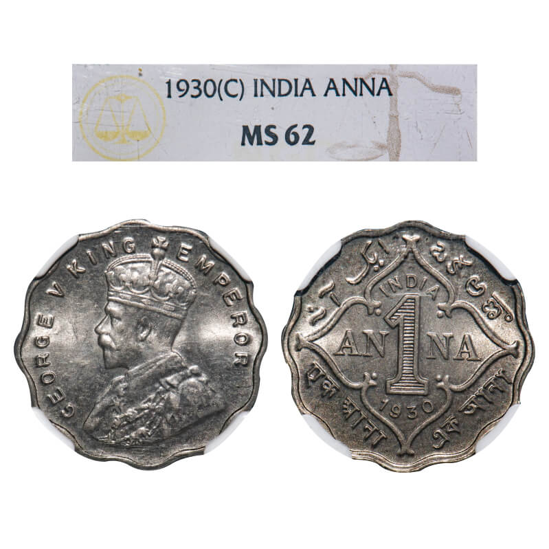 George V, Copper-Nickel, 1 Anna, 1930, Calcutta Mint, No dot. F. Prid 936. GK 1163. NGC Slabbed MS 62. Very Rare.