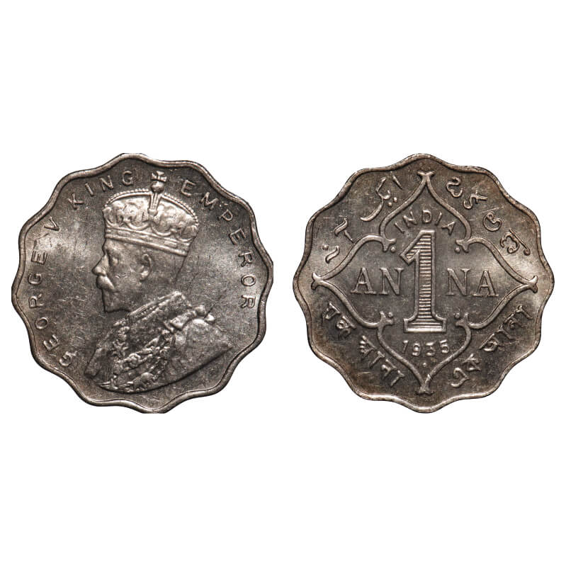 George V, Copper-Nickel, 1 Anna, 1935, Bombay Mint, Dot. F. Prid 957. GK 1166. Mint State. Very Scarce.