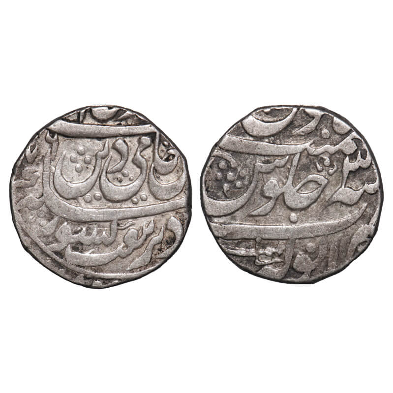 | Rohilkhand, Silver Rupee, 11.13g, Anwala (anola) Mint, under Regent Hafiz Rahmat Khan, ino Shah Alam II, AH (11)76/3 RY, Couplet Obv: sikka zad bar haft kishwar saya-e-fazle elah, hami- din-e-Muhammad Shah Alam Badshah, Rev: sana 3 julus flowers & rosette , zarb Anwala & Sword. KM 10 type unlisted. Very Fine, Scarce. |