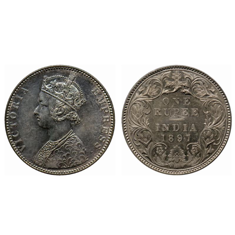 Victoria Empress, Silver Rupee, 1897, Bombay Mint, C2/I(ii), B incused. GK 581.
