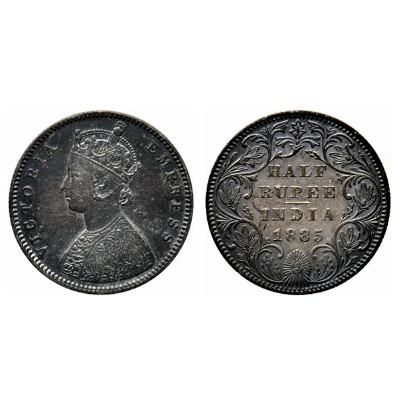 Victoria Empress, Silver ½ Rupee, 1885, Bombay Mint, A/II, B raised. Center vertical stroke in top ...