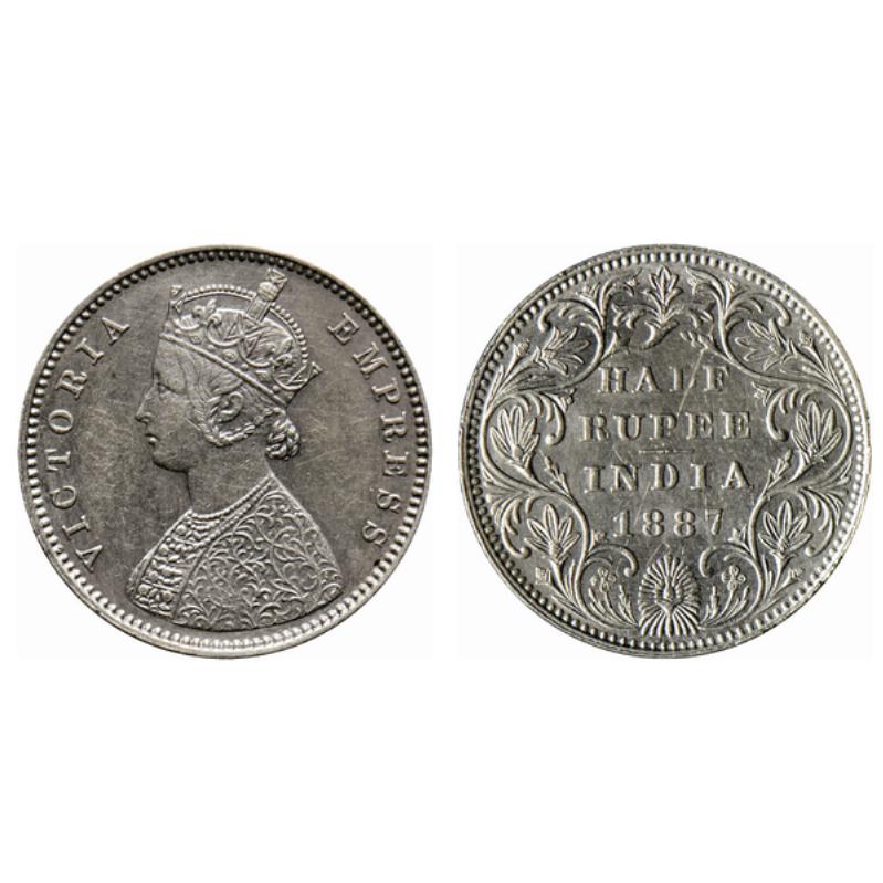 Victoria Empress, Silver ½ Rupee, 1887, Bombay Mint, A/II(i), B raised, Center vertical stroke in top flower is short and thin. GK 635.