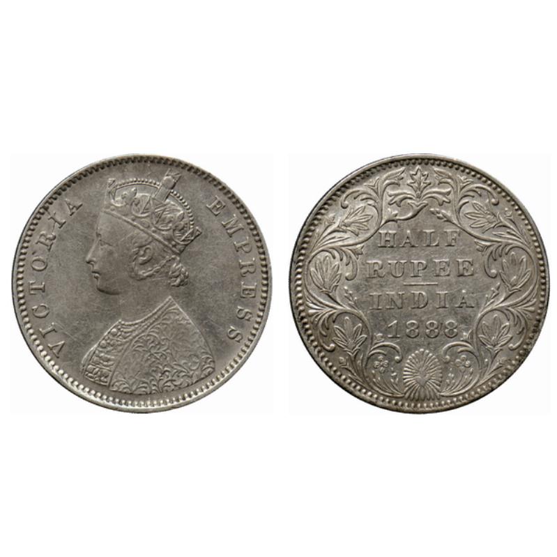 Victoria Empress, Silver ½ Rupee, 1888, Bombay Mint, A/II, small B raised. GK 639.