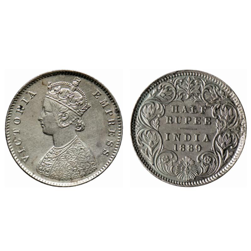 Victoria Empress, Silver ½ Rupee, 1889, Calcutta Mint, A/I, C incused. GK 645.