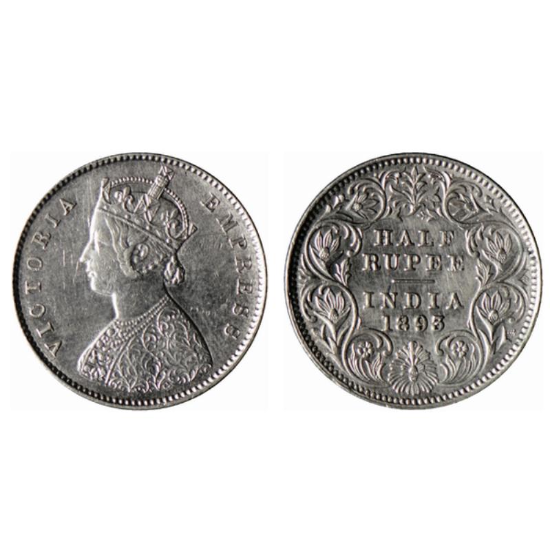 Victoria Empress, Silver ½ Rupee, 1893, Calcutta Mint, A/I, C incused. GK 649.