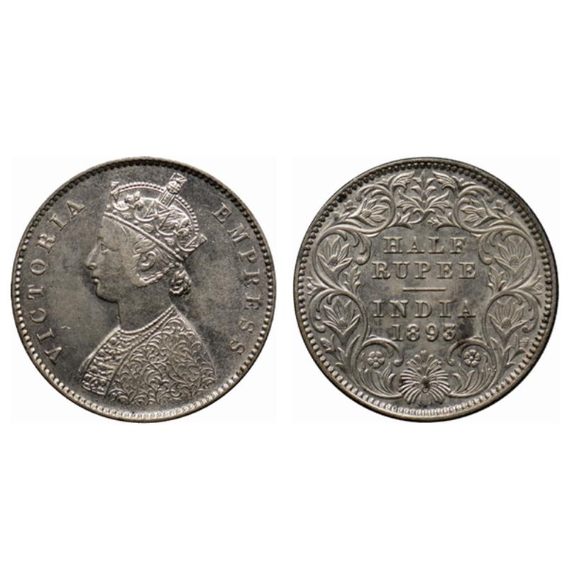 Victoria Empress, Silver ½ Rupee, 1893, Calcutta Mint, A/I, C incused. GK 649.