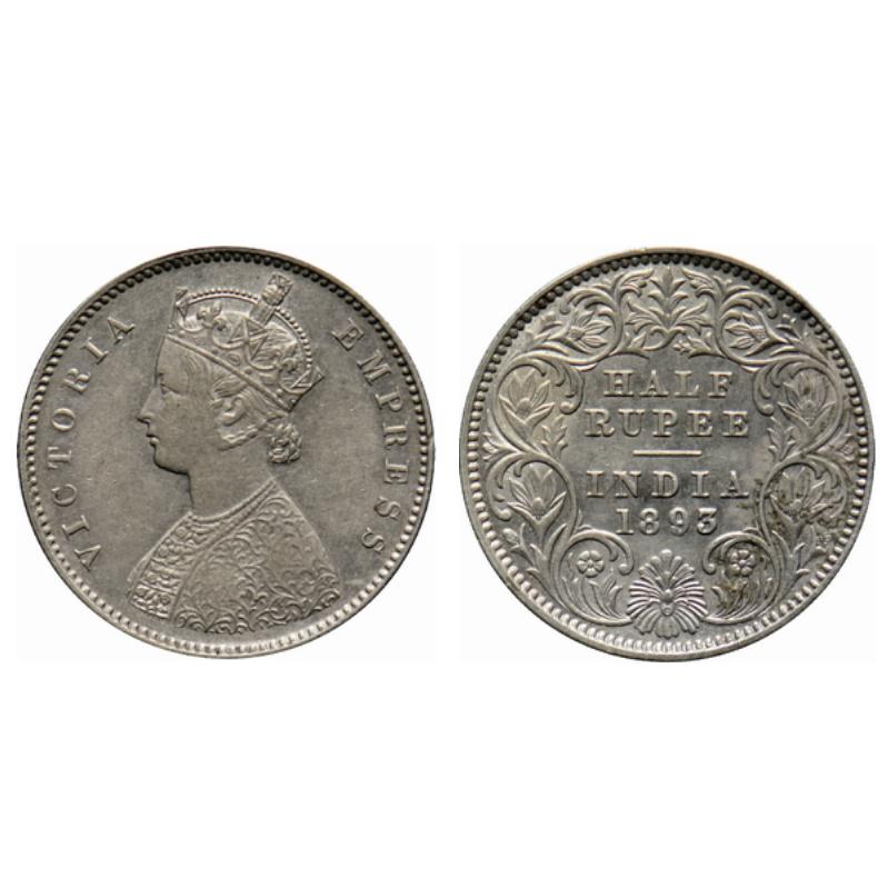 Victoria Empress, Silver ½ Rupee, 1893, Calcutta Mint, A/I, C incused. GK 649.
