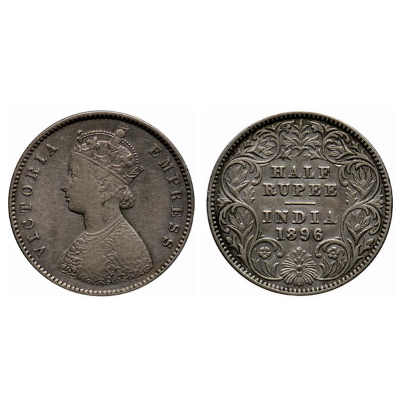 Victoria Empress, Silver ½ Rupee, 1896, Calcutta Mint, A/I, C incused. GK 652.