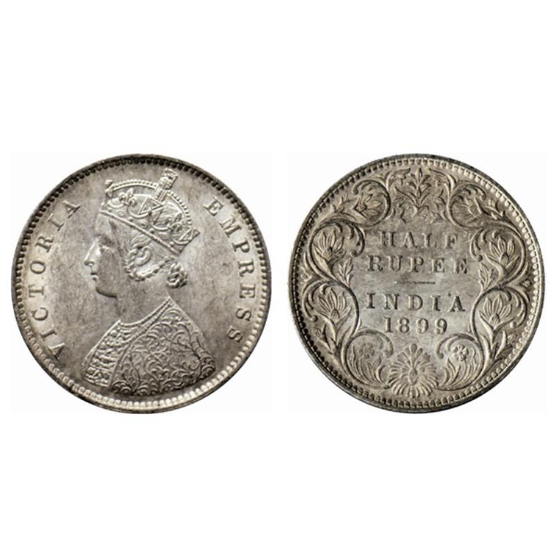 Victoria Empress, Silver ½ Rupee, 1899, Bombay Mint, A/I, B incused inverted. GK 662.