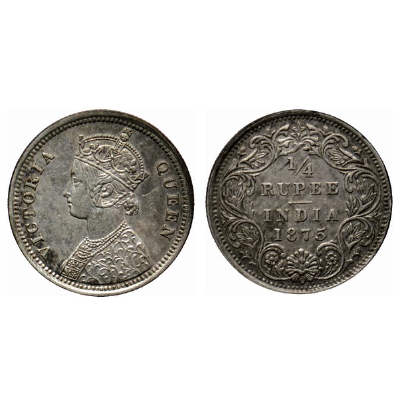 Victoria Queen, Silver ¼ Rupee, 1875, Bombay Mint, A/I, no dot. GK 666.