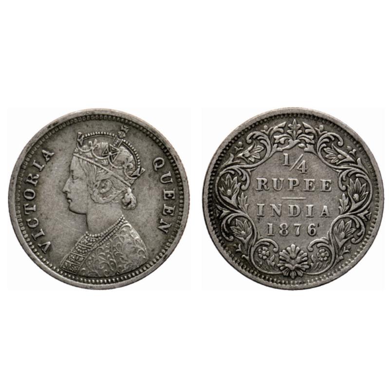 Victoria Queen, Silver ¼ Rupee, 1876, Bombay Mint, A/I, No dot. GK 668.