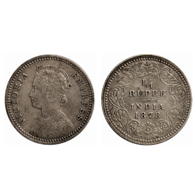 Victoria Empress, Silver ¼ Rupee, 1878, Calcutta Mint, C/II, no mint mark. GK 673.