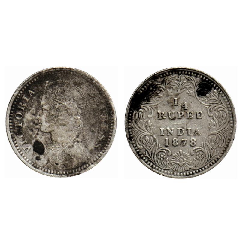 Victoria Empress, Silver ¼ Rupee, 1878, Calcutta Mint, C/II, no mint mark. GK 673.