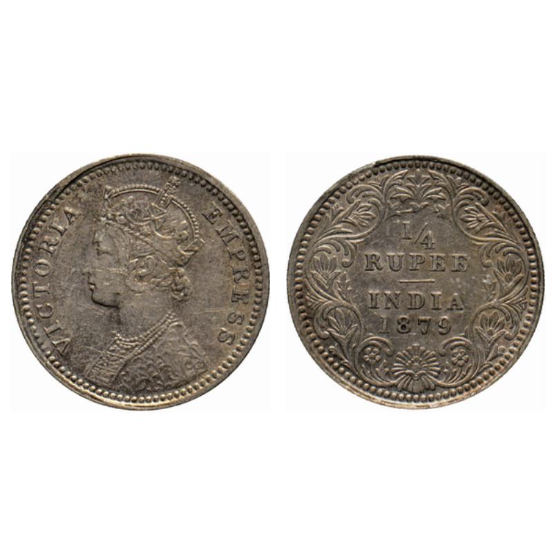 Victoria Empress, Silver ¼ Rupee, 1879, Calcutta Mint, C/II, C incused at bottom. GK 674.