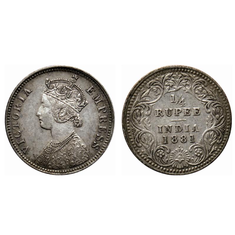 Victoria Empress, Silver ¼ Rupee, 1881, Bombay Mint, A/II, dot. GK 676.