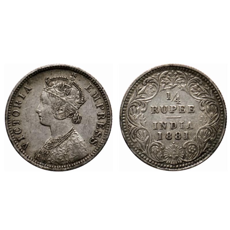 Victoria Empress, Silver ¼ Rupee, 1881, Bombay Mint, A/II, dot. GK 676.