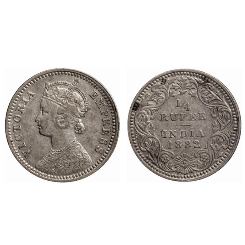 Victoria Empress, Silver ¼ Rupee, 1882, Calcutta Mint, C/II, C incused. GK 687.