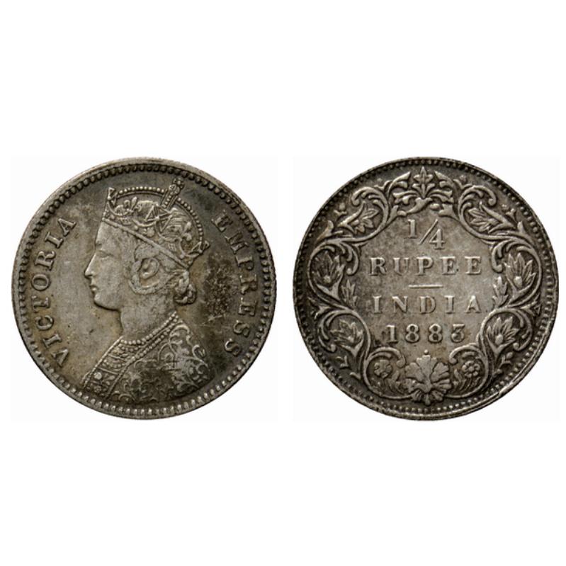 Victoria Empress, Silver ¼ Rupee, 1883, Bombay Mint, B/I, dot. GK 689.