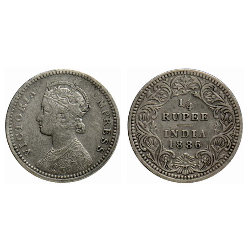 Victoria Empress, Silver ¼ Rupee, 1886, Calcutta Mint, C/II, C incused. GK 707.