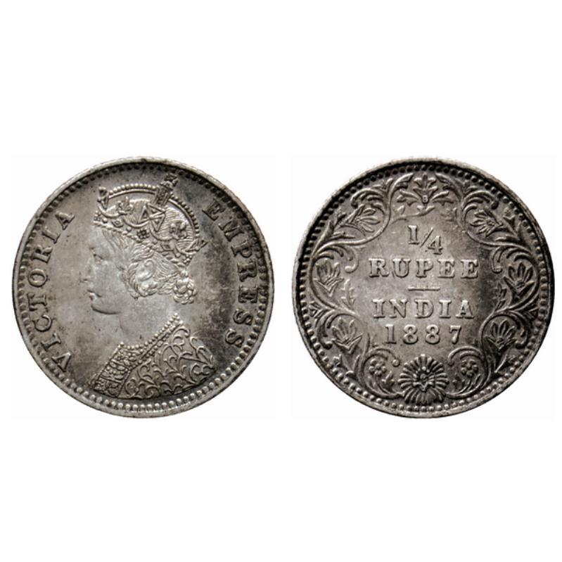 Victoria Empress, Silver ¼ Rupee, 1887, Bombay Mint, C(i)/II, B raised. GK 708.