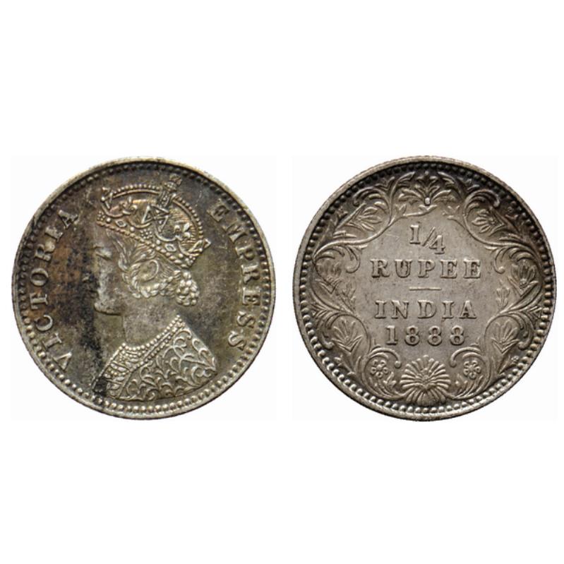 Victoria Empress, Silver ¼ Rupee, 1888, Bombay Mint, C(i)/II, B raised, with mud deposits. GK 711.