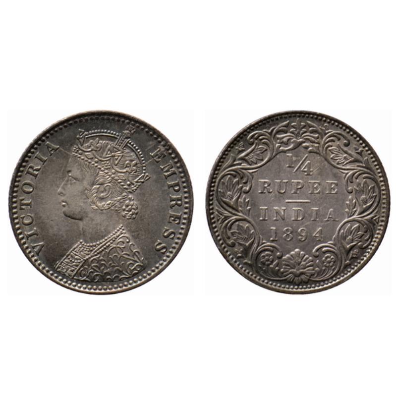 Victoria Empress, Silver ¼ Rupee, 1894, Bombay Mint, C(i)/I, B incused. GK 726.