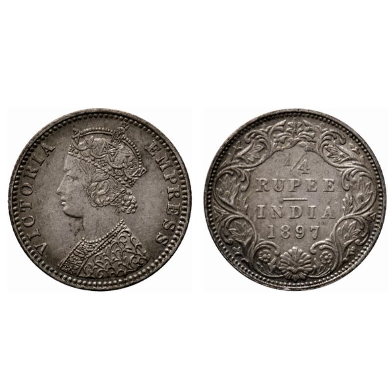 Victoria Empress, Silver ¼ Rupee, 1897, Bombay Mint, C(i)/I, B incused. GK 731.