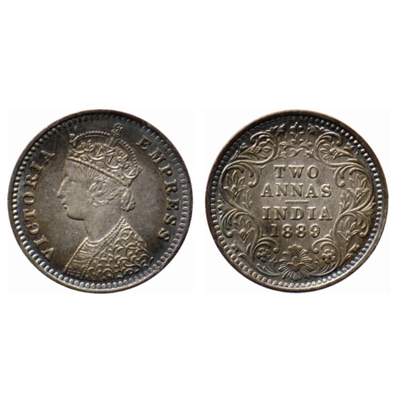Victoria Empress, Silver 2 Annas, 1889, Bombay Mint, B/II, B incused. GK 787.