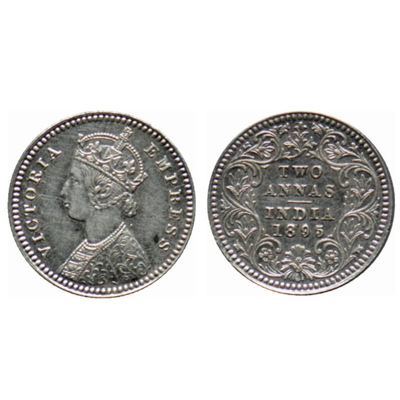 Victoria Empress, Silver 2 Annas, 1895, Calcutta Mint, B/II, 'C' incused. GK 803.