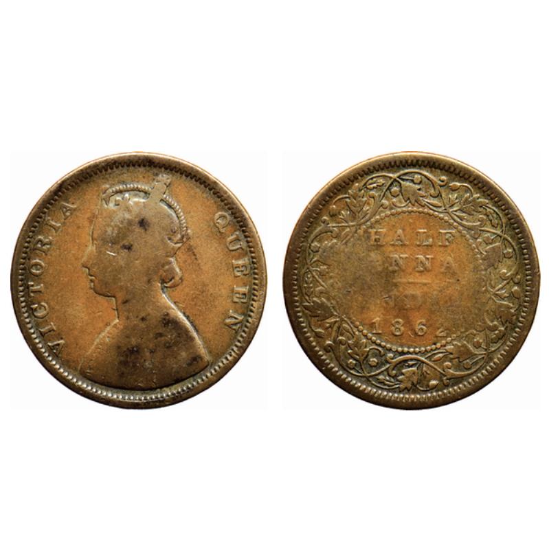 Victoria Queen, Copper Half Anna, Obverse Brokage / Lakhi. ...