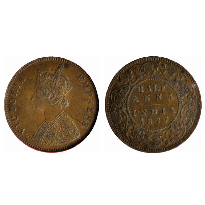 Victoria Empress, Copper Half Anna, 1877, Bombay Mint, B/II. GK 820.