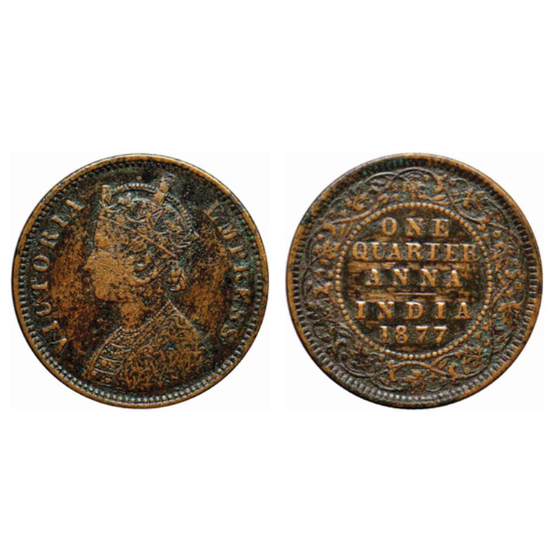 Victoria Empress, Copper Quarter Anna, Obverse Brokage/lakhi. ...
