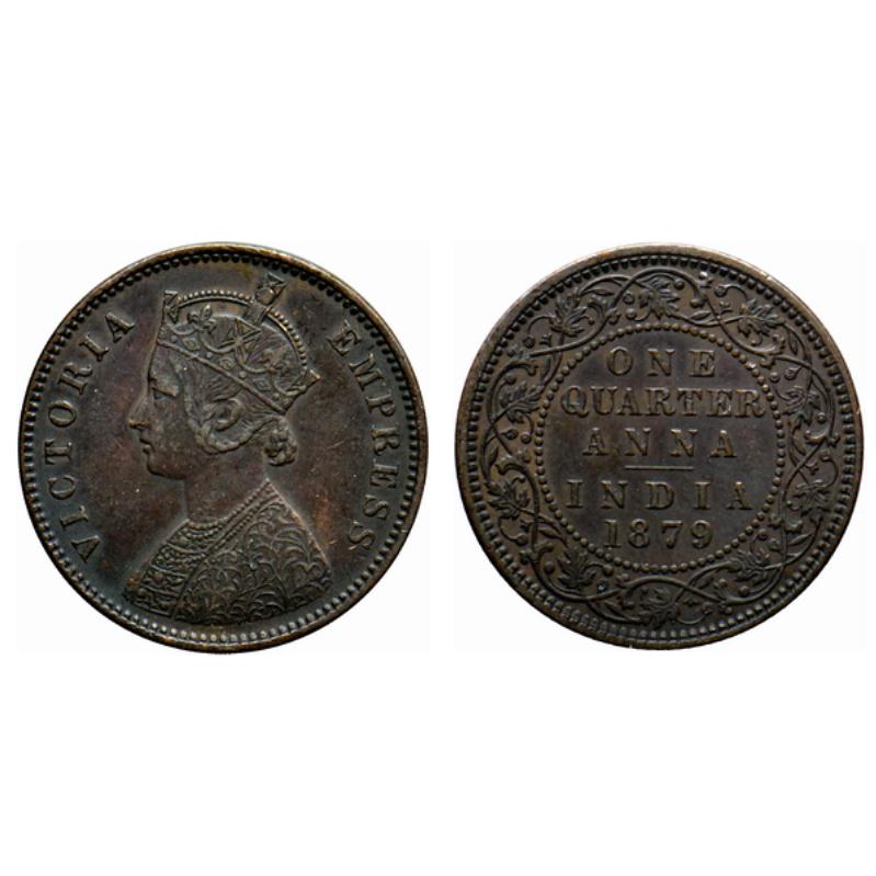 Victoria Empress, Copper Quarter Anna, 1879, Calcutta Mint, B/II, C incused. GK 831.