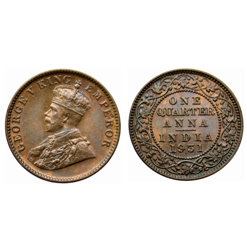 George V, Bronze Quarter Anna, 1931, Calcutta Mint, GK 1192.