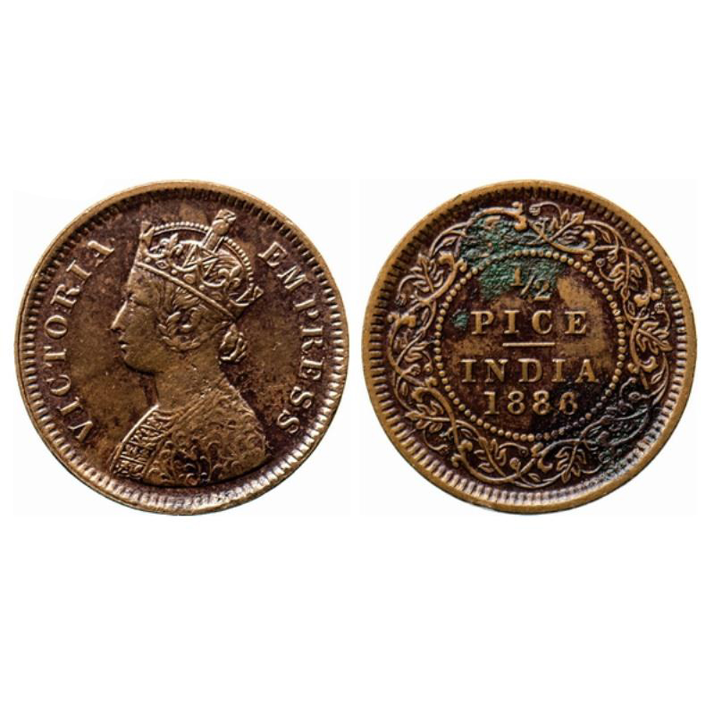 Victoria Empress, Copper, ½ Pice, 1886, Calcutta Mint, A/I, no mint mark. GK 865.