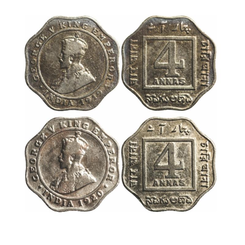 George V, Copper-Nickel, 4 Annas (2 Coins), 1919 & 1920, Calcutta Mint, No dot. GK 1101,1103.