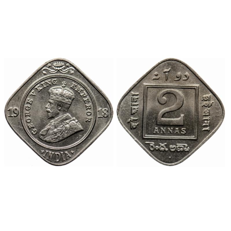 George V, Copper Nickel, 2 Annas, 1918, Bombay Mint, Dot. GK 1119.
