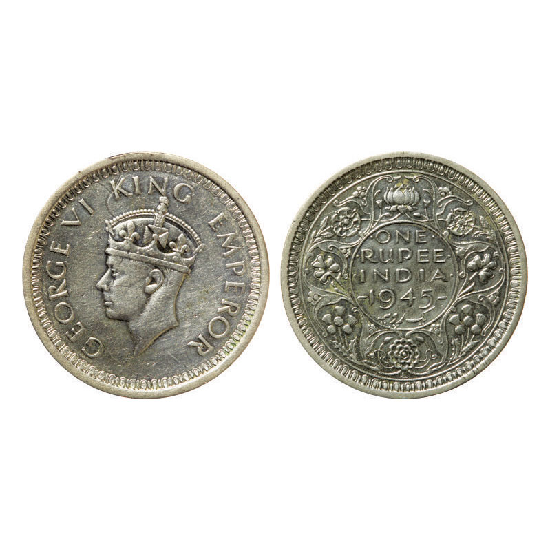 George VI, Half Silver 1/4 Rupee, 1945, Lahore Mint, Large 5, Type II. F.Prid 479. ...