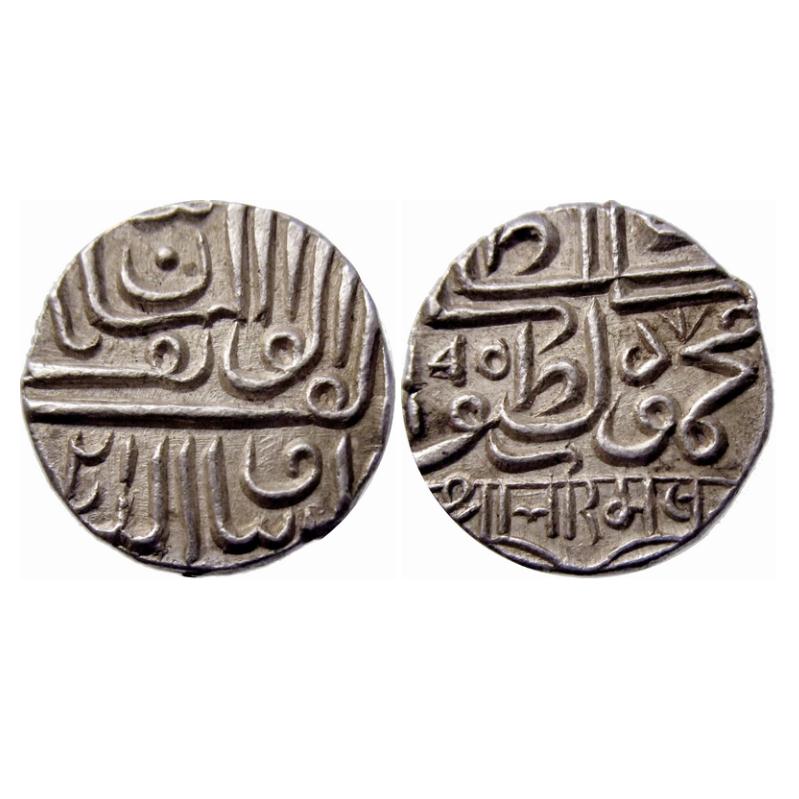Kishangarh, Silver 1/4 Rupee, 2.68g, Anonymous Hammered Issue, INO Muhammad Shah, Jhar on reverse. ...