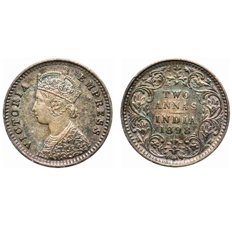 Victoria Empress, Silver, 2 Annas, 1898, Calcutta Mint, B/II, 'C' incused. F. Prid # 513. GK 810. F...