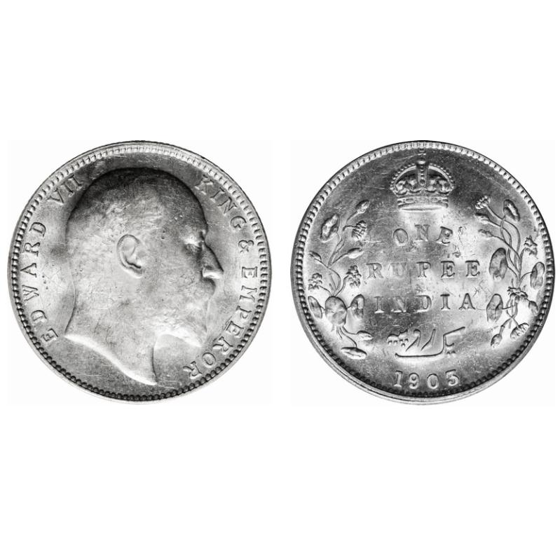 Edward VII, Silver, Rupee, 1903, Bombay Mint, 'B' incused, Dot. F. Prid # 199. GK 926. Brilliant Uncirculated with original mint luster. Very Scarce.